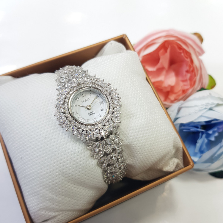 ساعت نقره زنانه جواهری مجلسی مدل SA01 کپی