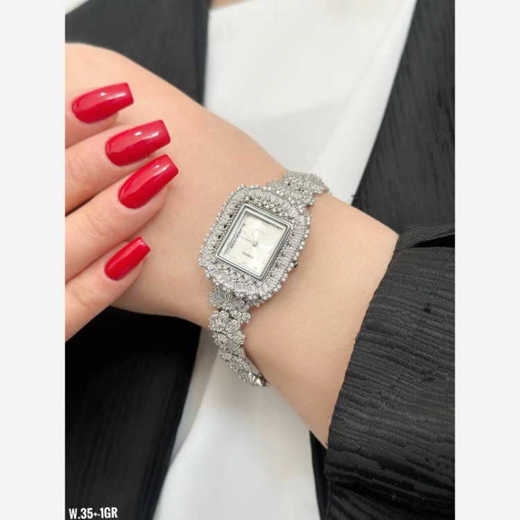 ساعت نقره برلیان خور با عیار استاندارد نقره 925 با ضمانت 5 ساله موتور ساعت (موتور میوتا ژاپن) با آبکاری طلا سفید و بدون حساسیت ارسال با فاکتور معتبر و رسمی به همراه جعبه مخصوص