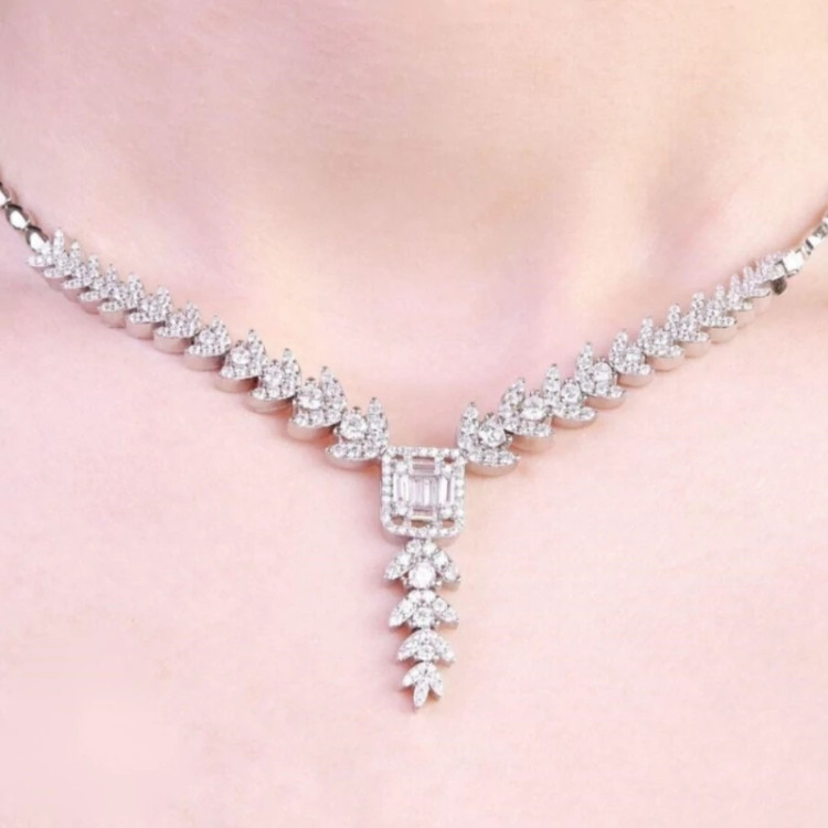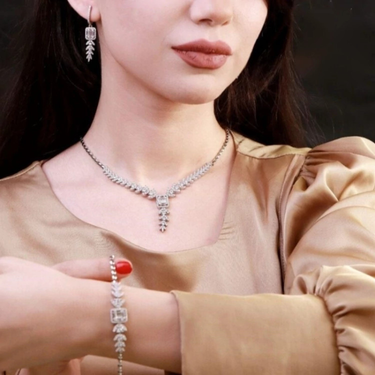 سرویس نقره برلیان خور با عیار استاندارد 925 نقره باآبکاری طلا سفید (رادیوم) بدون حساسیت کپی نمونه جواهری ارسال به همراه فاکتور معتبر و رسمی با جعبه مخصوص (ارسال رایگان)