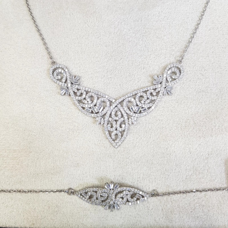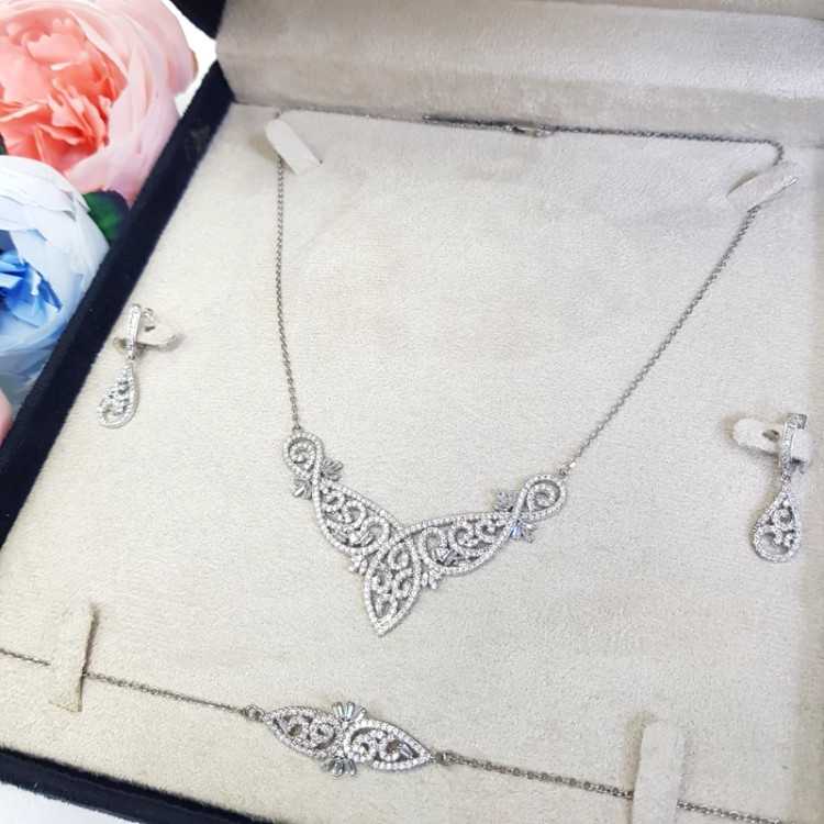 سرویس زنجیری نقره زنانه جواهری مجلسی مدل Slvszsh28