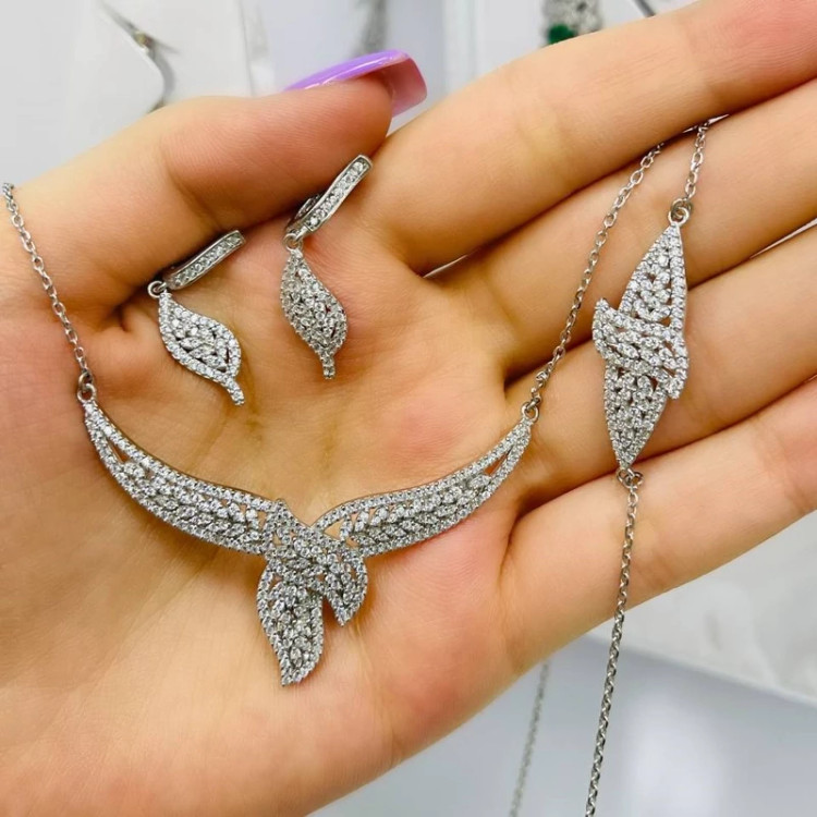 سرویس نقره زنجیری سوپر میکرو با عیار ۹۲۵ نقره با آبکاری طلا سفید و بدون حساسیت کپی نمونه جواهری ارسال با فاکتور معتبر و به همراه جعبه مخصوص