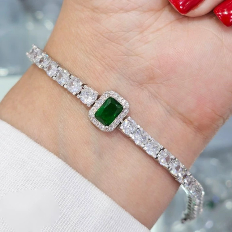 دستبند تنیسی نقره با عیار استاندارد 925 نقره با آبکاری طلا سفید (رادیوم) بدون حساسیت کپی نمونه جواهری ارسال با فاکتور معتبر و رسمی زیر نظر اتحادیه و به همراه جعبه مخصوص با ارسال (رایگان)