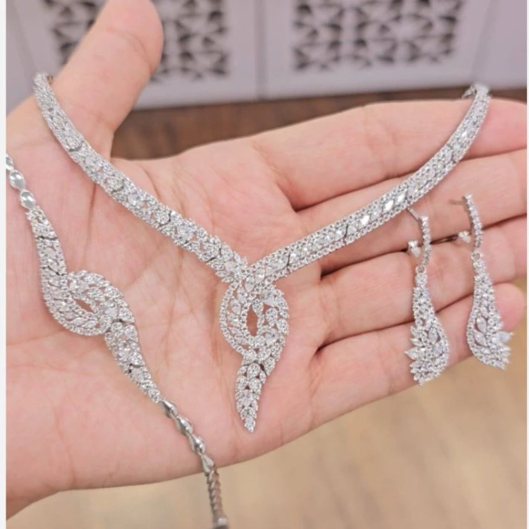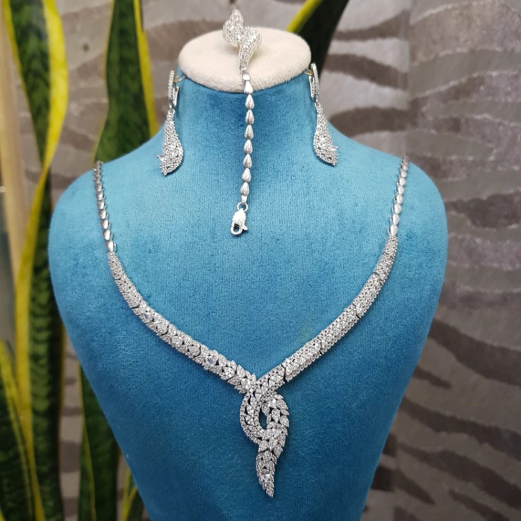 سرویس نقره برلیان خور با عیار استاندارد 925 نقره باآبکاری طلا سفید (رادیوم) بدون حساسیت کپی نمونه جواهری ارسال به همراه فاکتور معتبر و رسمی با جعبه مخصوص (ارسال رایگان)