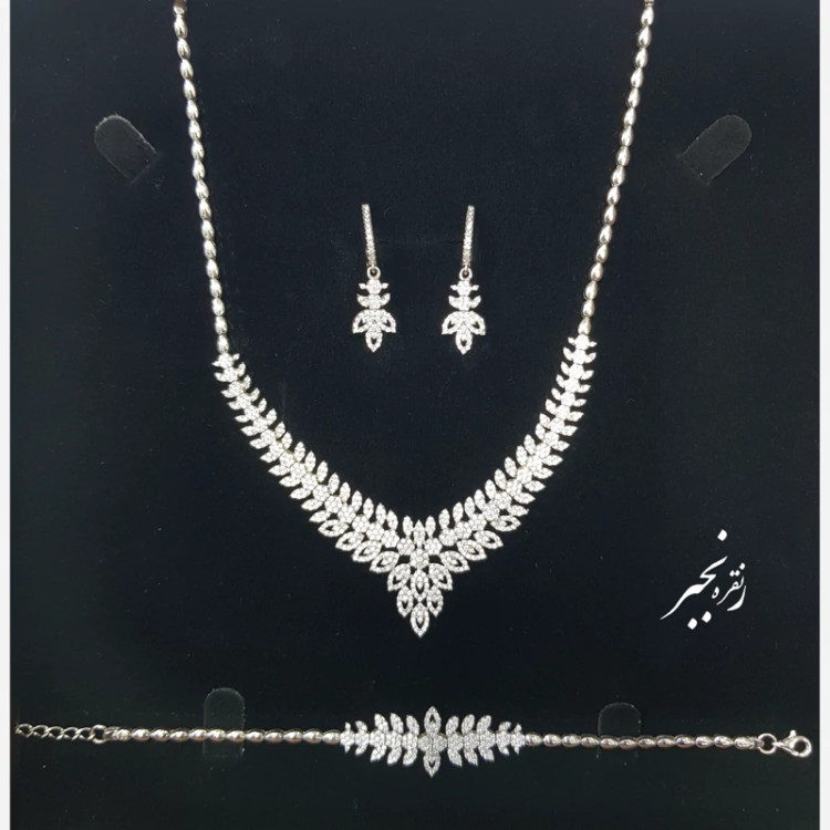 سرویس نقره برلیان خور با عیار استاندارد 925 نقره باآبکاری طلا سفید (رادیوم) بدون حساسیت کپی نمونه جواهری ارسال به همراه فاکتور معتبر و رسمی با جعبه مخصوص (ارسال رایگان)