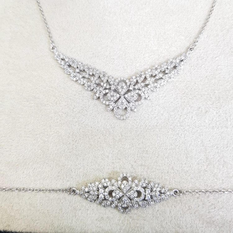 سرویس نقره زنجیری جواهری زنانه مجلسی با عیار استاندارد 925 نقره باآبکاری طلا سفید (رادیوم) بدون حساسیت و سازگار با پوست های حساس و کپی نمونه جواهری ارسال به همراه فاکتور معتبر و رسمی با جعبه مخصوص (ارسال رایگان)