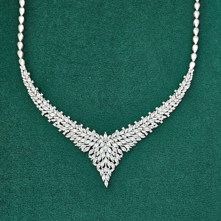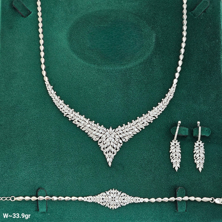 سرویس نقره جواهری زنانه مجلسی با عیار استاندارد ۹۲۵ نقره با آبکاری طلا سفید و بدون حساسیت و سازگار با پوست های حساس