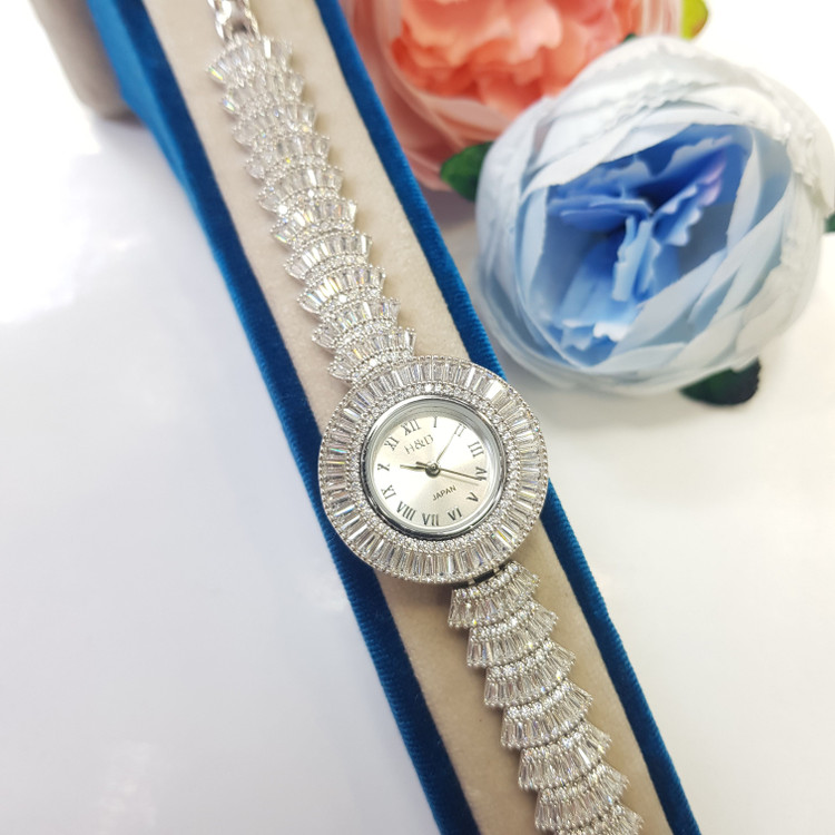 ساعت نقره زنانه جواهری مجلسی با عیار استاندارد نقره 925 با ضمانت 5 ساله موتور ساعت و با آبکاری رادیوم (طلا سفید) و بدون حساسیت پوستی و ارائه به همراه فاکتور معتبر و رسمی به همراه جعبه مخصوص