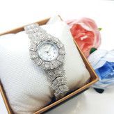 ساعت نقره زنانه جواهری مجلسی با عیار استاندارد 925 و آبکاری رادیوم (طلا سفید) بدون حساسیت پوستی و سازگار با پوست های حساس با ضمانت 5 ساله موتور ساعت و ارائه به همراه فاکتور معتبر و رسمی به همراه جعبه مخصوص