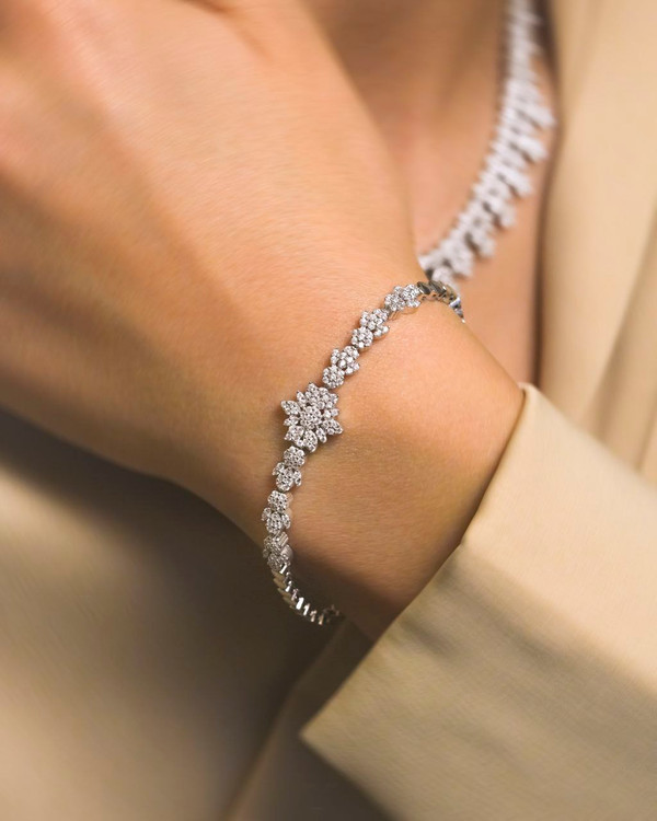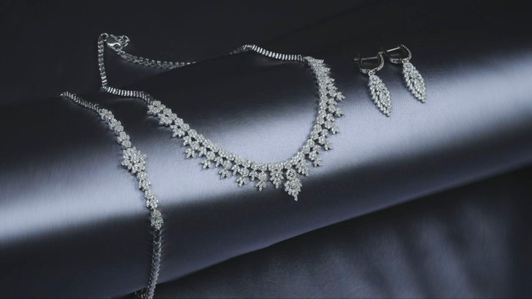 سرویس نقره جواهری زنانه مجلسی با عیار استاندارد ۹۲۵ نقره با آبکاری طلا سفید و بدون حساسیت و سازگار با پوست های حساس