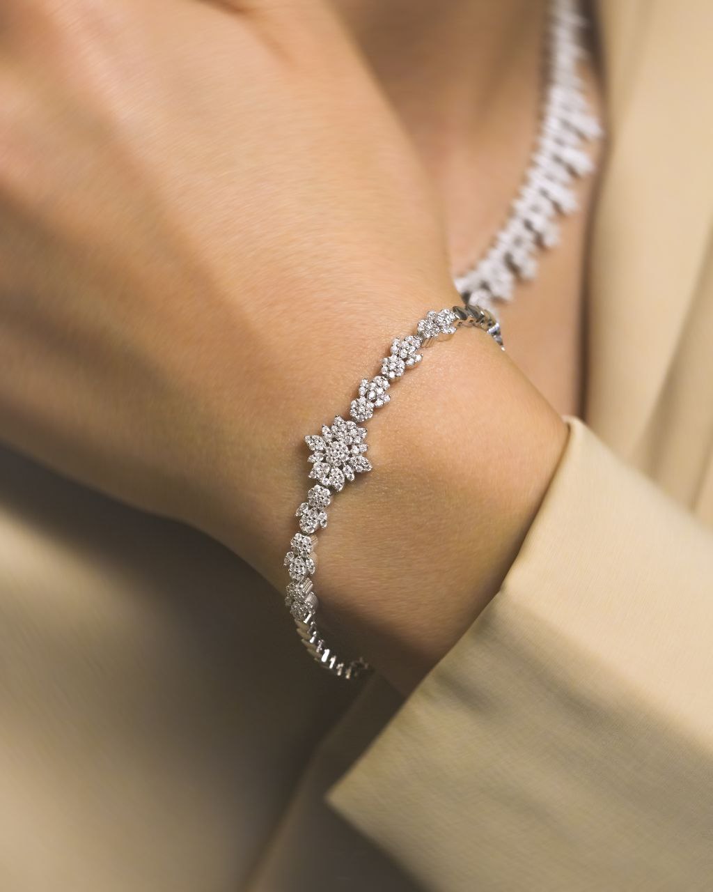 سرویس نقره جواهری زنانه مجلسی با عیار استاندارد ۹۲۵ نقره با آبکاری طلا سفید و بدون حساسیت و سازگار با پوست های حساس