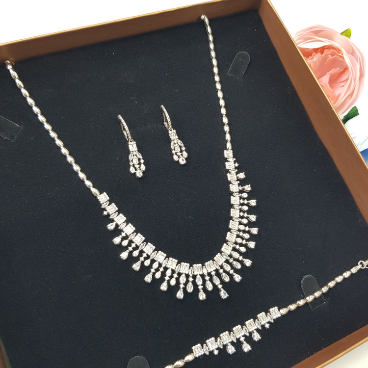 دیدن محصولات مرتبطسرویس نقره جواهری زنانه مجلسی با عیار استاندارد ۹۲۵ نقره با آبکاری طلا سفید و بدون حساسیت و سازگار با پوست های حساس
