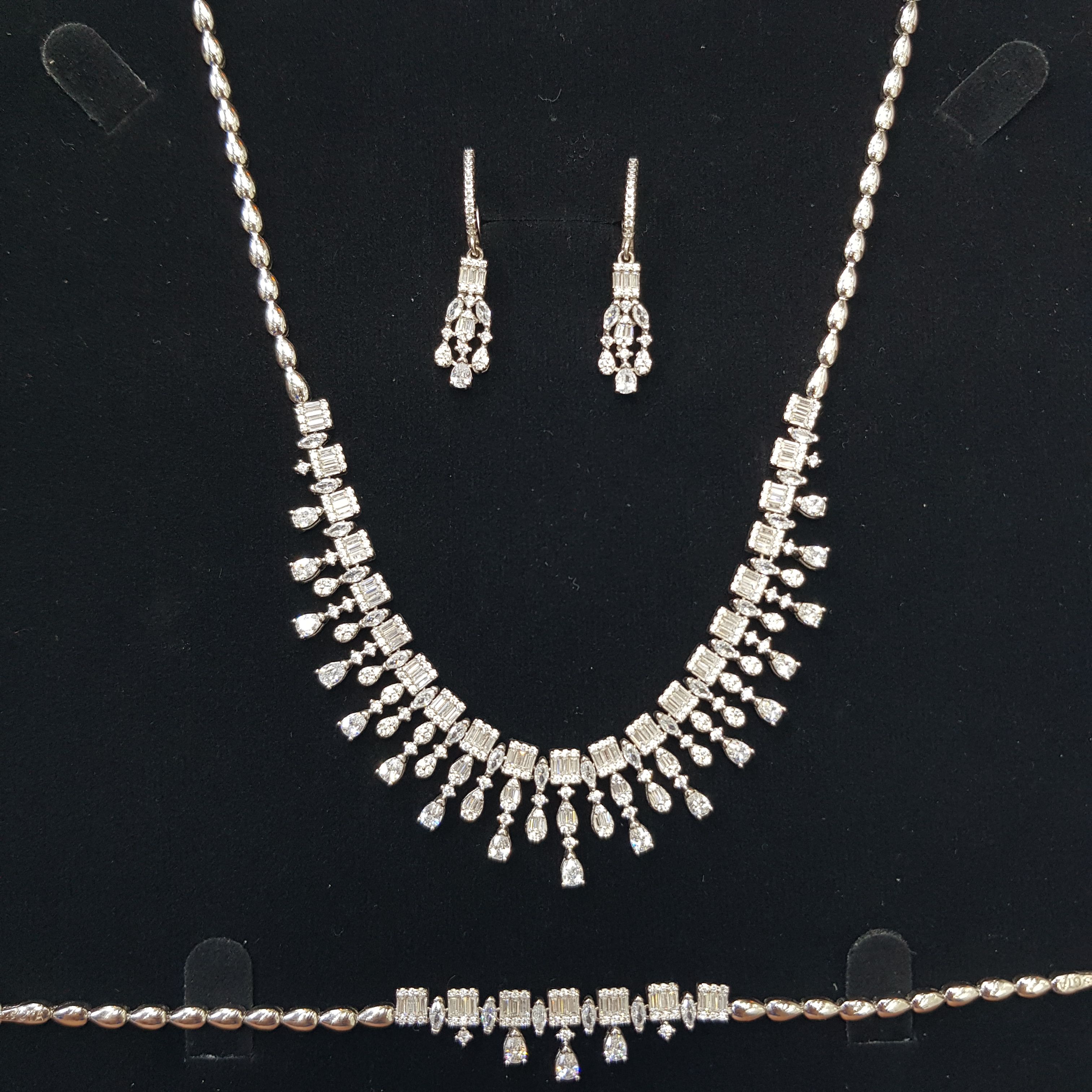 دیدن محصولات مرتبطسرویس نقره جواهری زنانه مجلسی با عیار استاندارد ۹۲۵ نقره با آبکاری طلا سفید و بدون حساسیت و سازگار با پوست های حساس