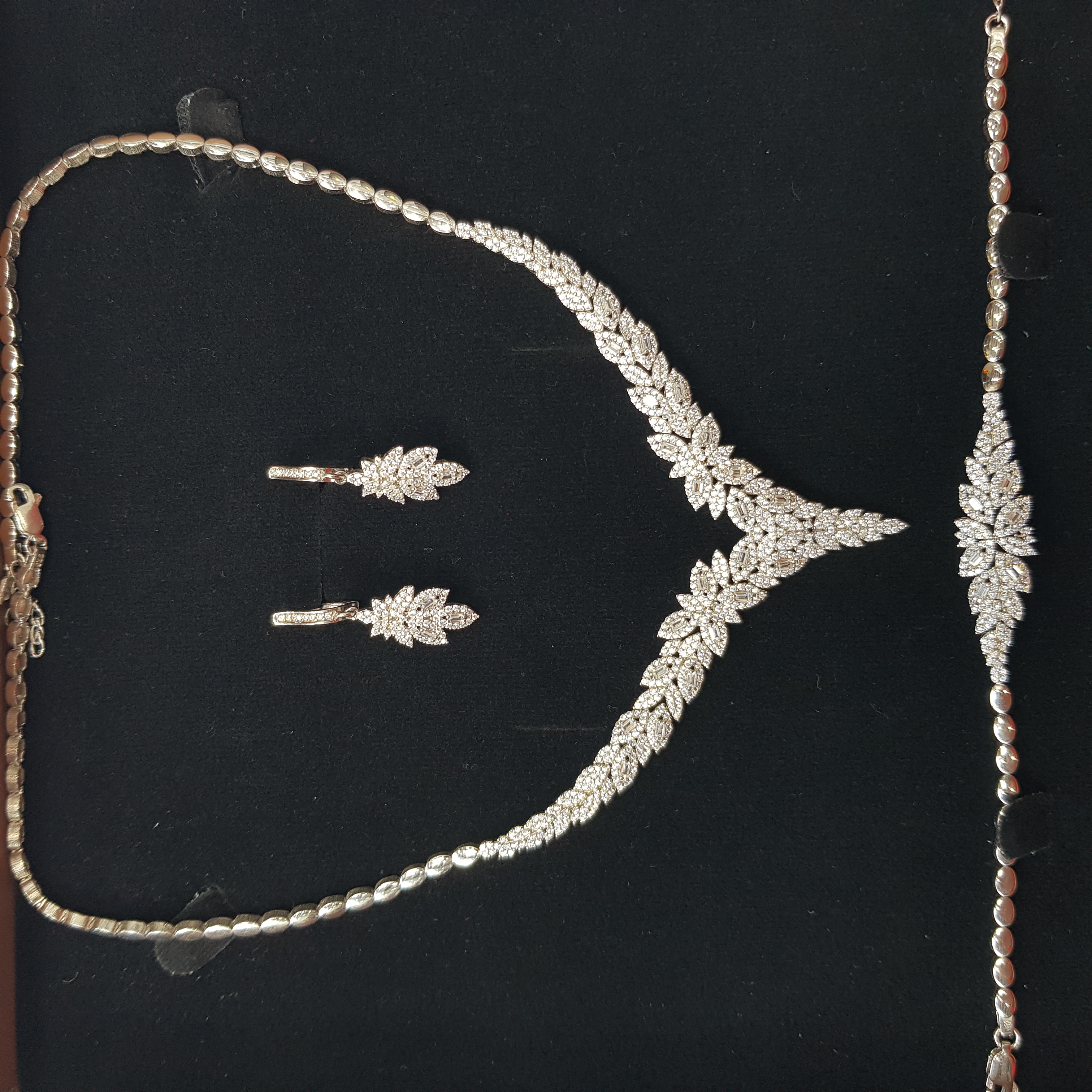 سرویس نقره جواهری زنانه مجلسی با عیار استاندارد ۹۲۵ نقره با آبکاری طلا سفید و بدون حساسیت و سازگار با پوست های حساس